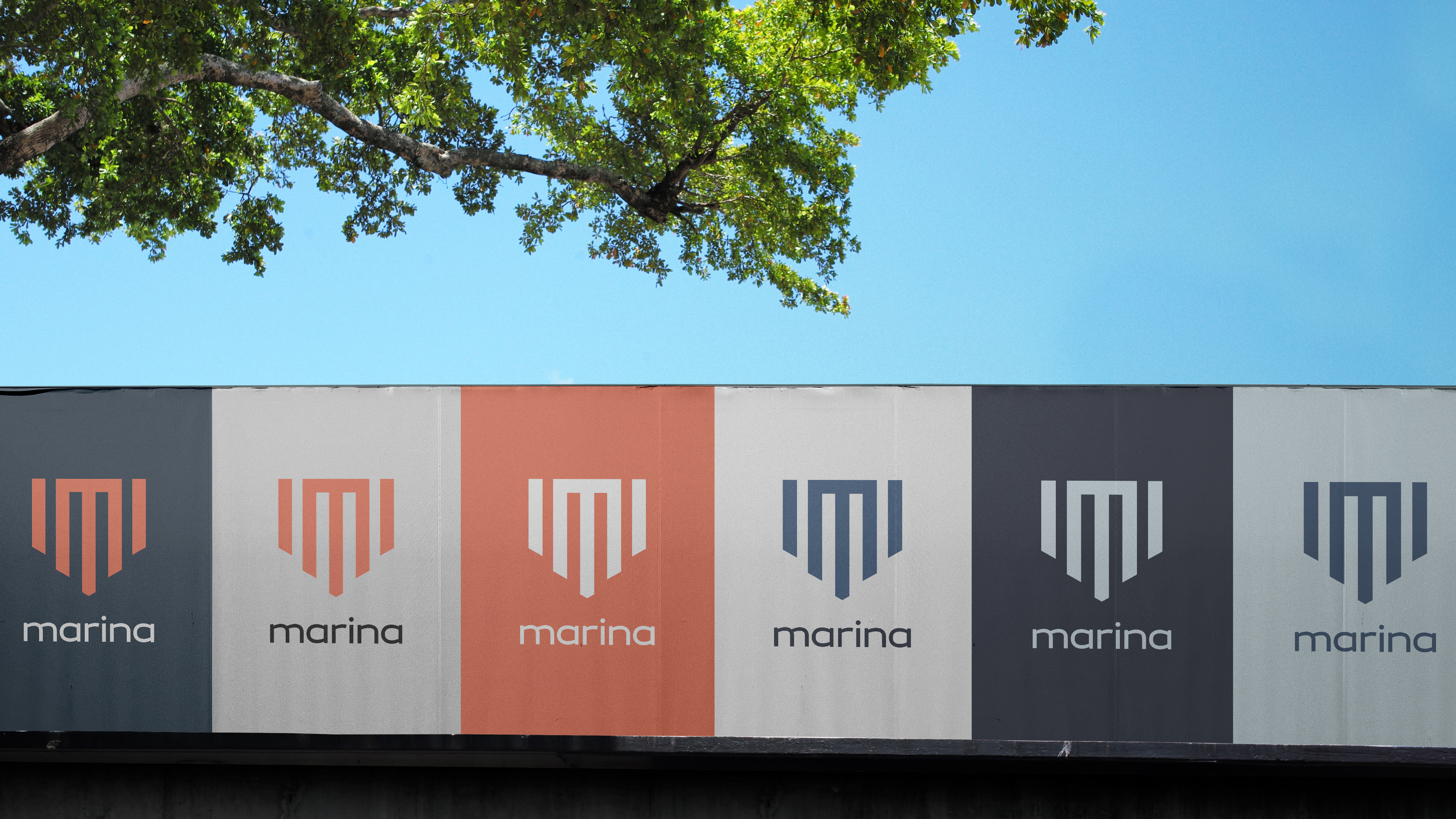 Marina’s visual identity shines in its simplicity and directness, besides the letter M representing Marina’s first letter “M”, the vertical lines are used to communicate superiority, strength, and the project’s ability to reach new heights, both figuratively and literally.